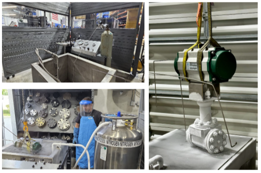 • Las válvulas se sumergen en nitrógeno líquido para simular condiciones de servicio.